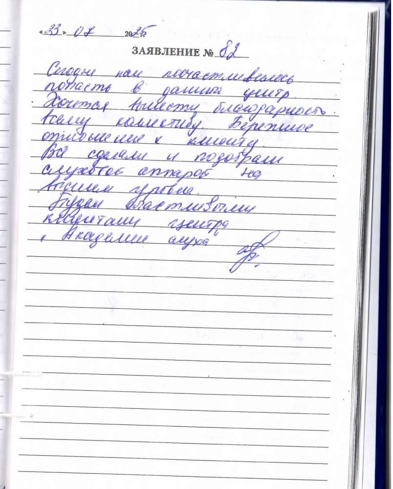Сегодня нам посчастливилось попасть в данный центр. Хочется вынести благодарность всему коллективу. Бережное отношение к клиенту. Все сделали и подобрали слуховой аппарат на высшем уровне. Будем счастливыми клиентами центра «Академии слуха».