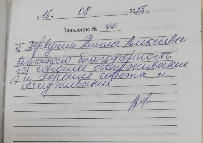 Я, Первушина Алла Алексеевна, выражаю благодарность за хорошее обслуживание и хорошие советы и обслуживание.