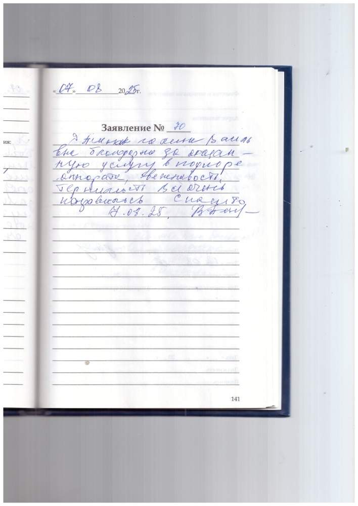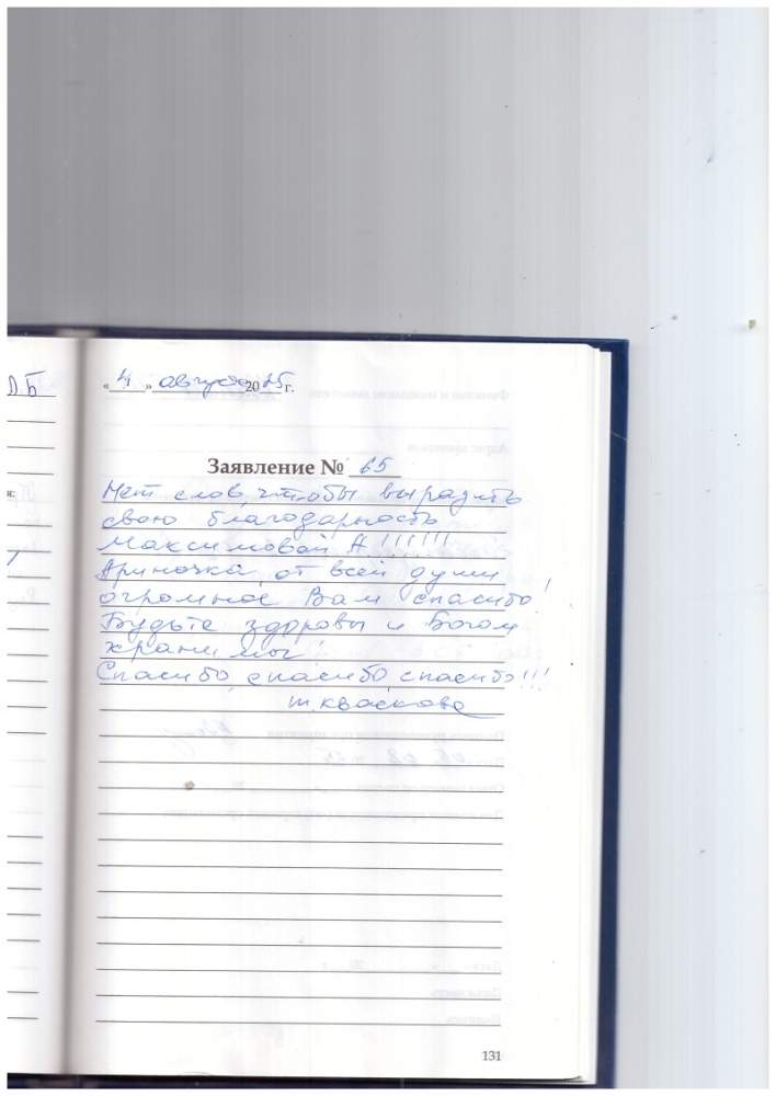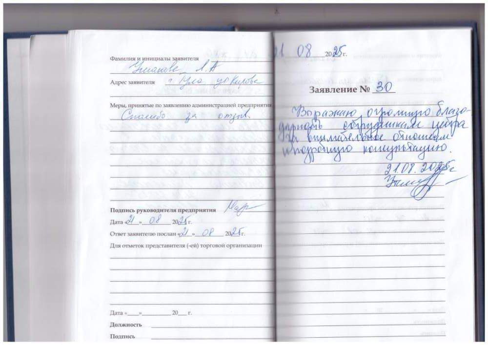 Я, Ушакова Л.А., выражаю глубокую благодарность коллективу за внимательное и теплое обслуживание. Спасибо большое.