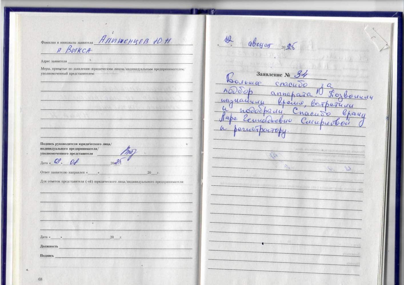 Большое спасибо за подбор аппарата! Позвонили назначили время, встретили и подобрали. Спасибо врачу Ларе Геннадьевне Смирновой и регистратору.