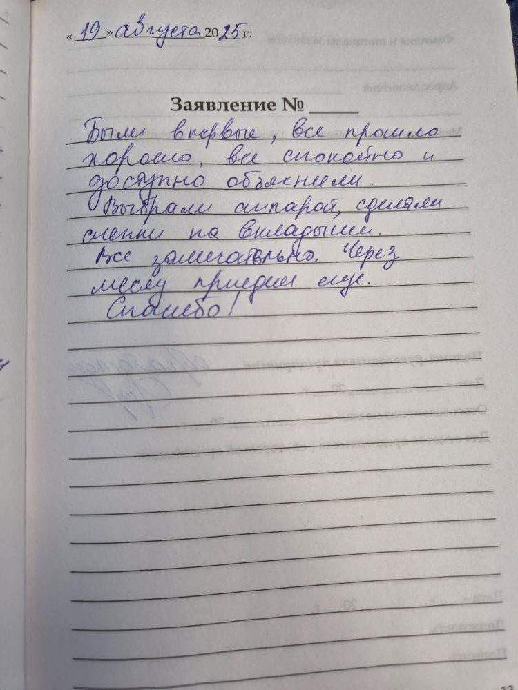 Спасибо за обслуживание! Все было понятно, объяснили все, дали брошюры если что-то забуду.