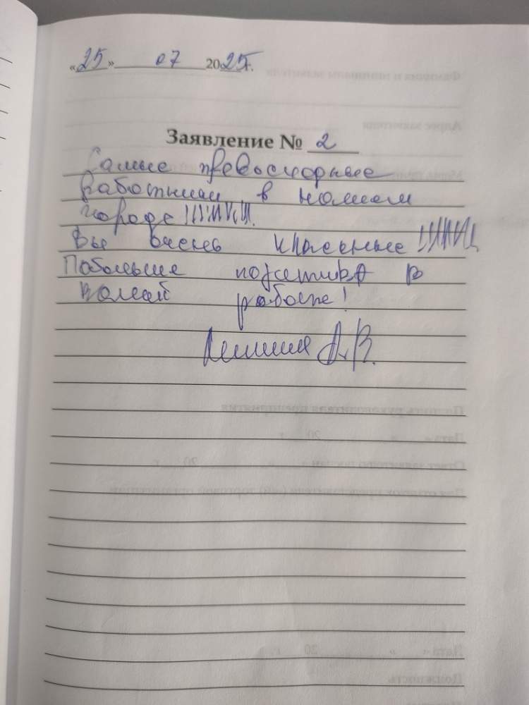 Самые превосходные работники в нашем городе!!! Вы очень классные!!!!. Побольше позитива в вашей работе!