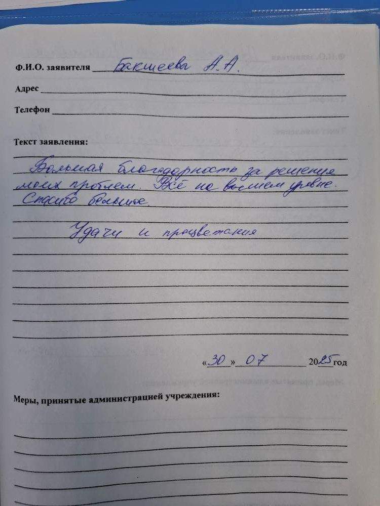 Большая благодарность за решение моих проблем. Всё на высшем уровне. Спасибо большое. Удачи и процветания.