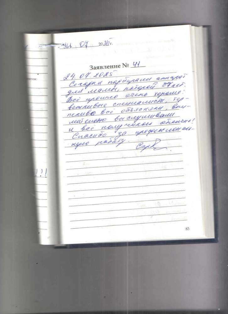 Сегодня подбирали аппарат для мамы, которой 87 лет. Всё прошло очень хорошо: вежливые специалисты, терпеливо всё объяснили, внимательно выслушали и всё получилось отлично! Спасибо за профессиональную работу.