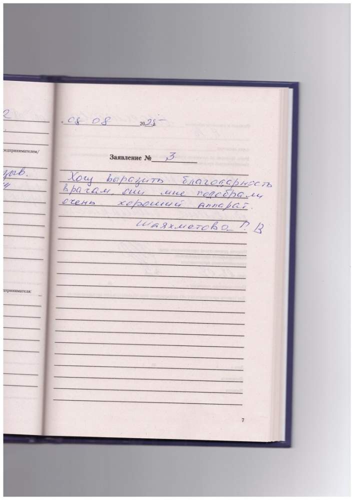 Хочу выразить благодарность врачам, они мне подобрали очень хороший аппарат