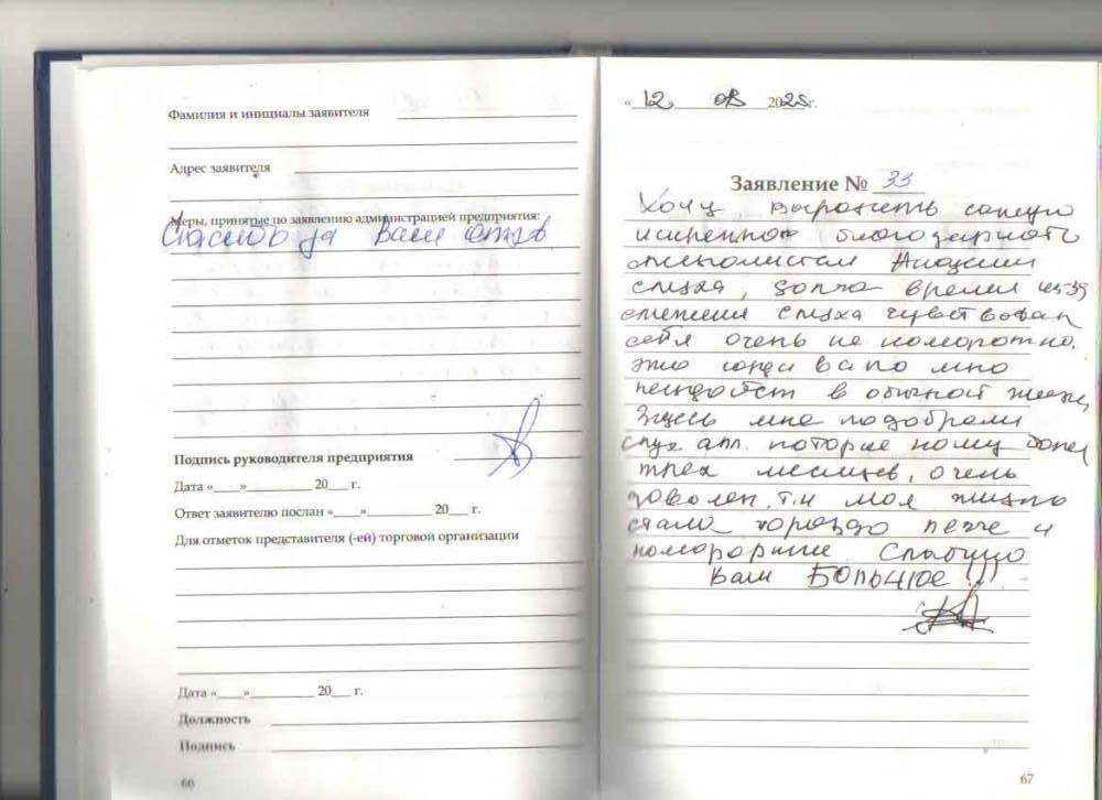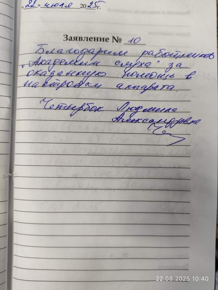 Благодарим работников "Академии слуха" за оказанную помощь в настройке аппарата