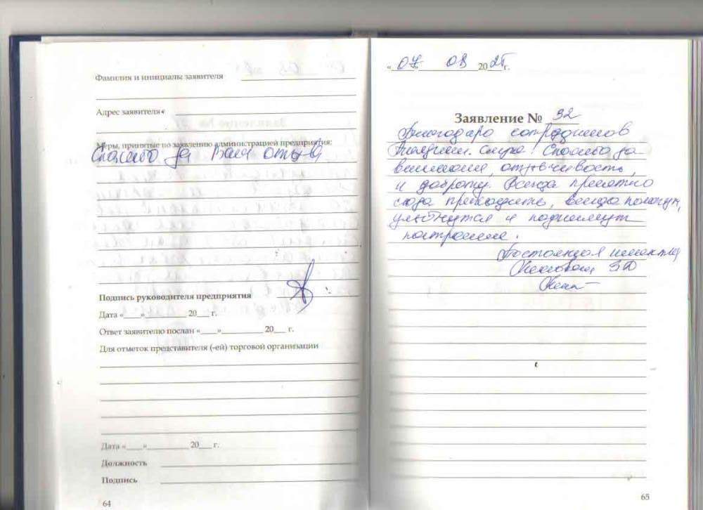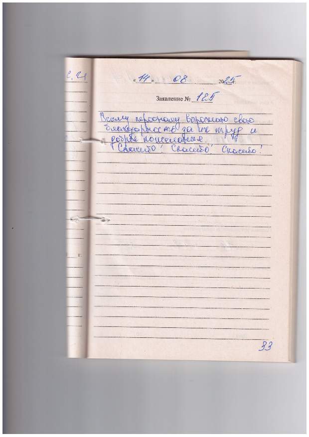 Всему персоналу выражаю свою благодарность за их труд и добрые пожелания.