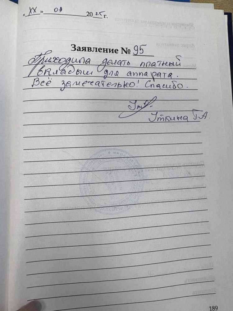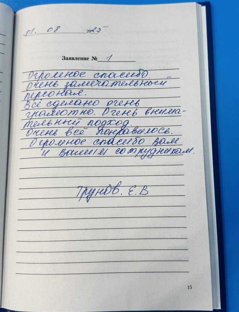 Огромное спасибо! Очень замечательный персонал. Всё сделано очень грамотно.Очень внимательный подход. Очень всё понравилось. Огромное спасибо Вам и Вашим сотрудникам.