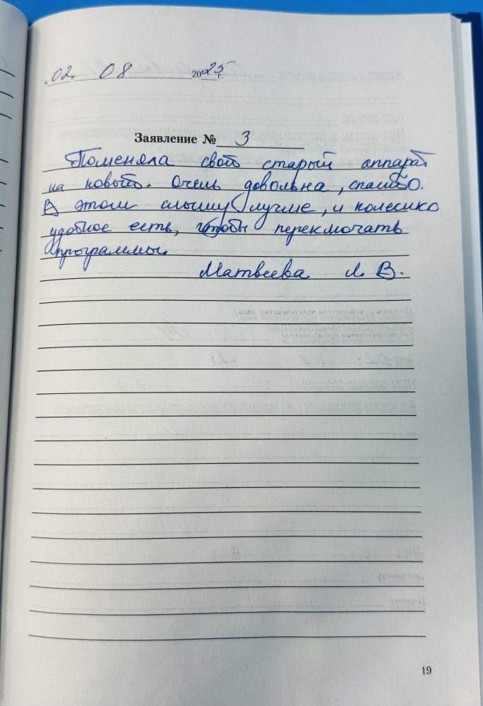 Поменяла свой старый аппарат на новый.Очень довольна. Спасибо.В этом слышу лучше, и колёсико удобное есть, чтобы переключать программы.