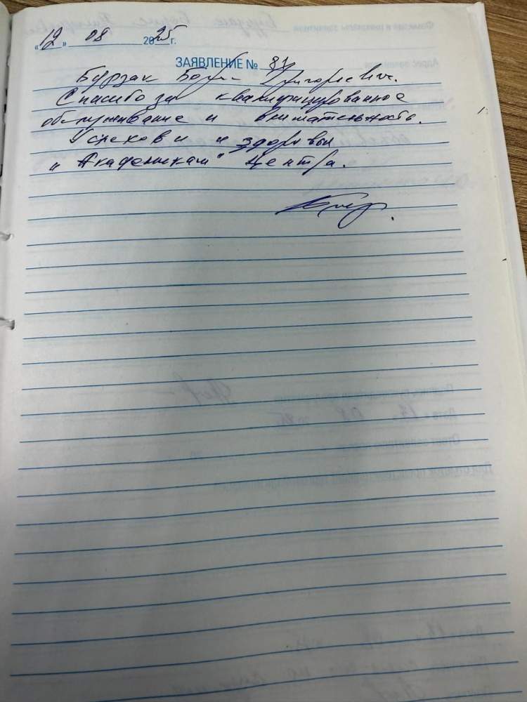 Спасибо за квалифицированное обслуживание и внимательность. Успехов и здоровья "Академикам" Центра.