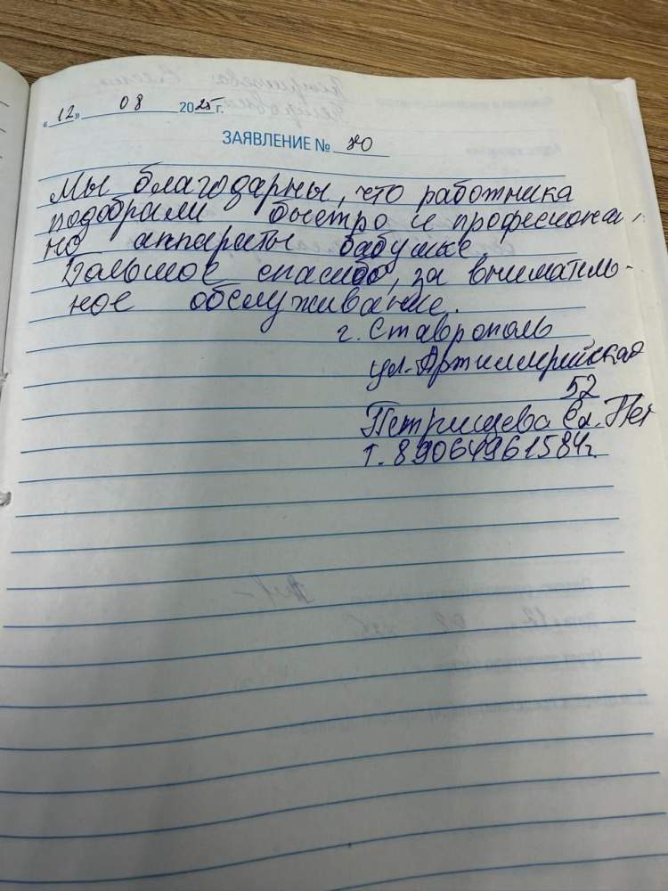 Мы благодарны, что работники подобрали быстро и профессионально аппараты бабушке.