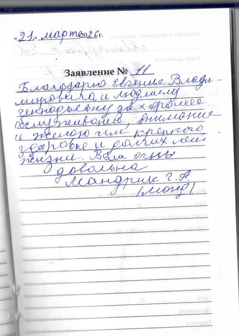 Большое спасибо за чуткое отношение,обслуживание и доброту.