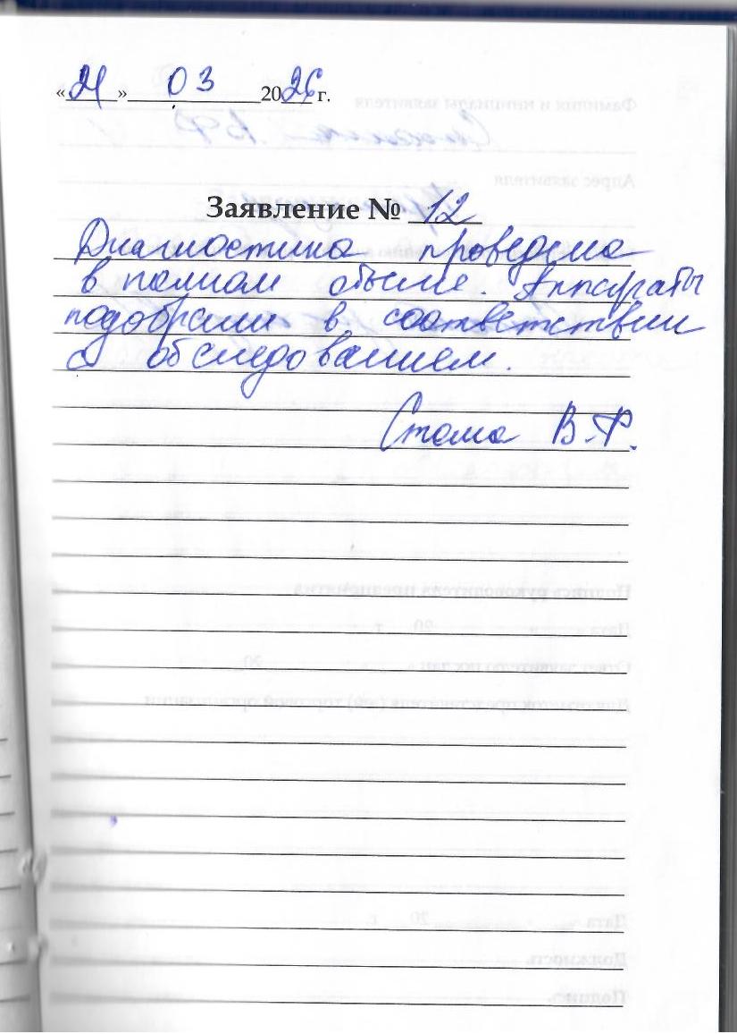 Диагностика проведена в полном объеме. Аппараты подобрали в соответствии с обслуживанием. Стома В. Ф.