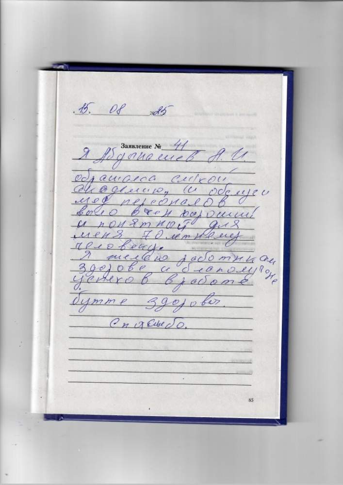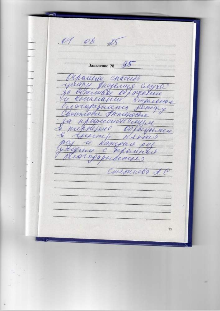 Выражаю благодарность сотрудникам за чуткое отношение, внимание и радушный прием.