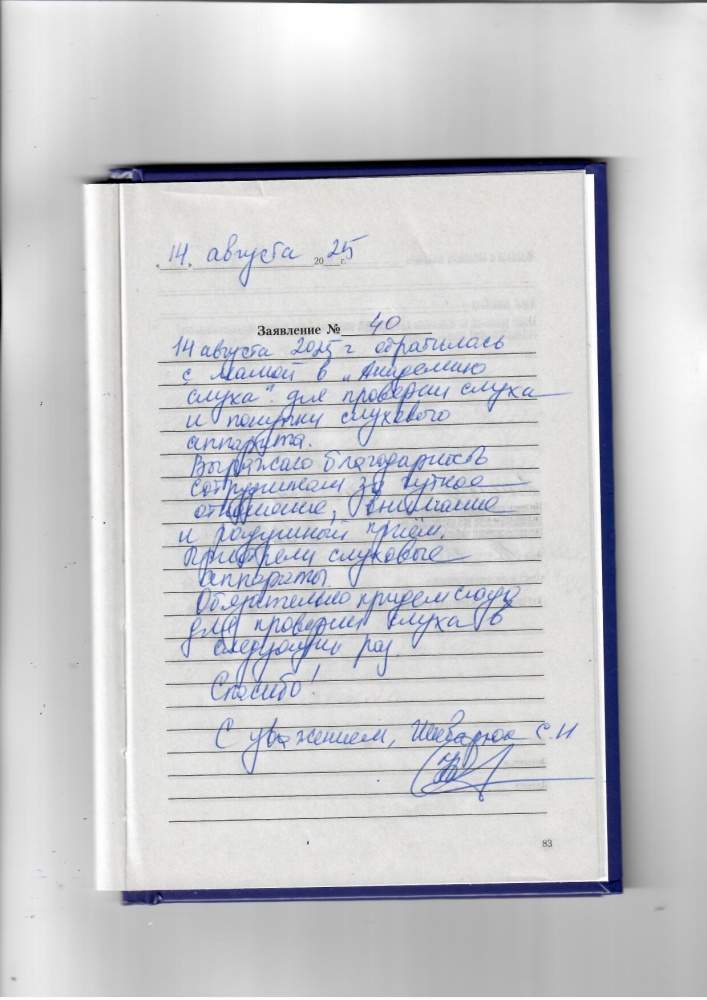 Слуховой аппарат подобрали хороший! Спасибо большое всему обслуживающему персоналу, особенно Элле Игоревне.