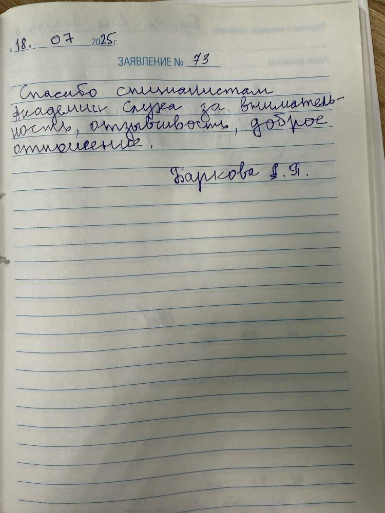 Спасибо специалистам Академии Слуха за внимательность, отзывчивость, доброе отношение.