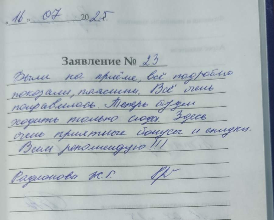 Были на приеме, все подробно показали, пояснили. Все очень понравилось. Теперь будем ходить только сюда. Здесь очень приятные бонусы и скидки. Всем рекомендую!!!