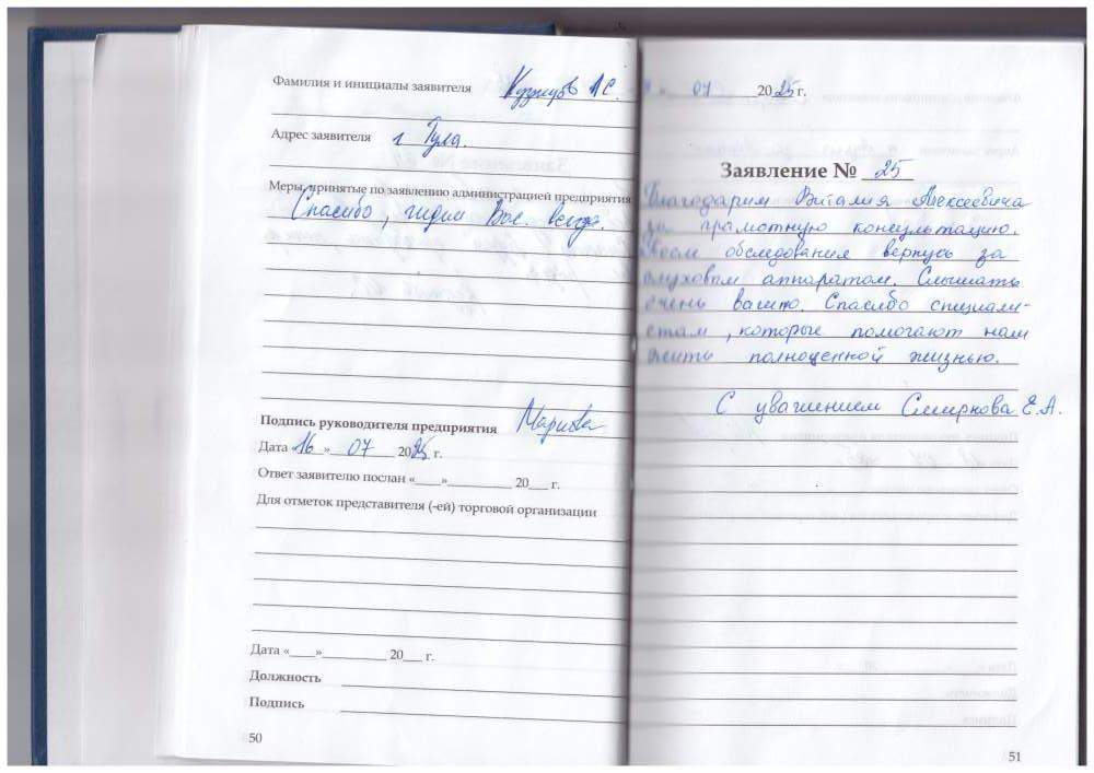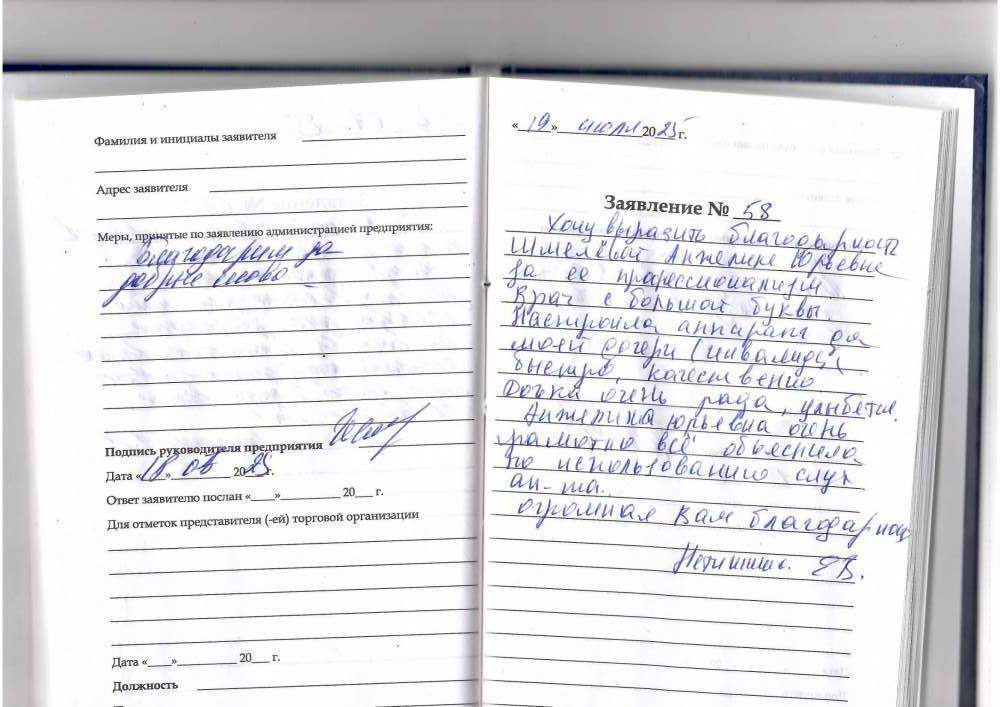 19.07.2025. Хочу выразить благодарность Шмелёвой Анжелике Юрьевне за её профессионализм. Врач с большой буквы! Настроила аппарат моей дочери (инвалиду), быстро, качественно. Дочка очень рада, улыбается. Анжелика Юрьевна очень грамотно все объяснила по использованию слухового аппарата.