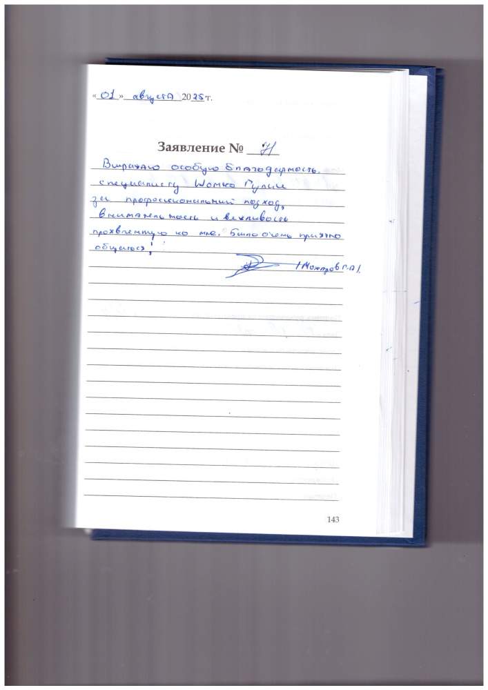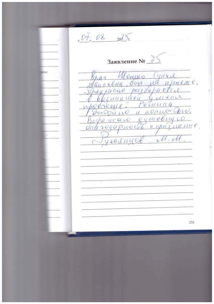 Врач Шомко Гулия Наилевна, был на приеме. Прекрасно разбирается в возникшей у меня проблеме. Решила достойно и полностью. Выражаю душевную благодарность и признание.