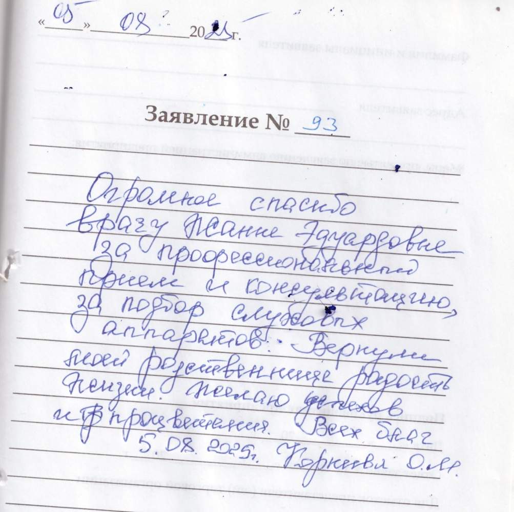 Выражаю огромную благодарность сотрудникам, за помощь и возможность слышать. Спасибо большое.