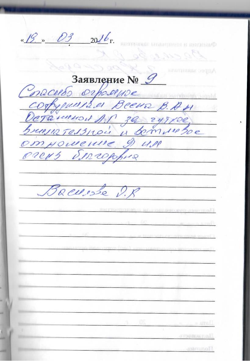 Спасибо огромное сотрудникам Весна В.А. Останиной Л.Г. за чуткое, внимательное и вежливое отношение. Я им очень благодарна. Василова О.К.