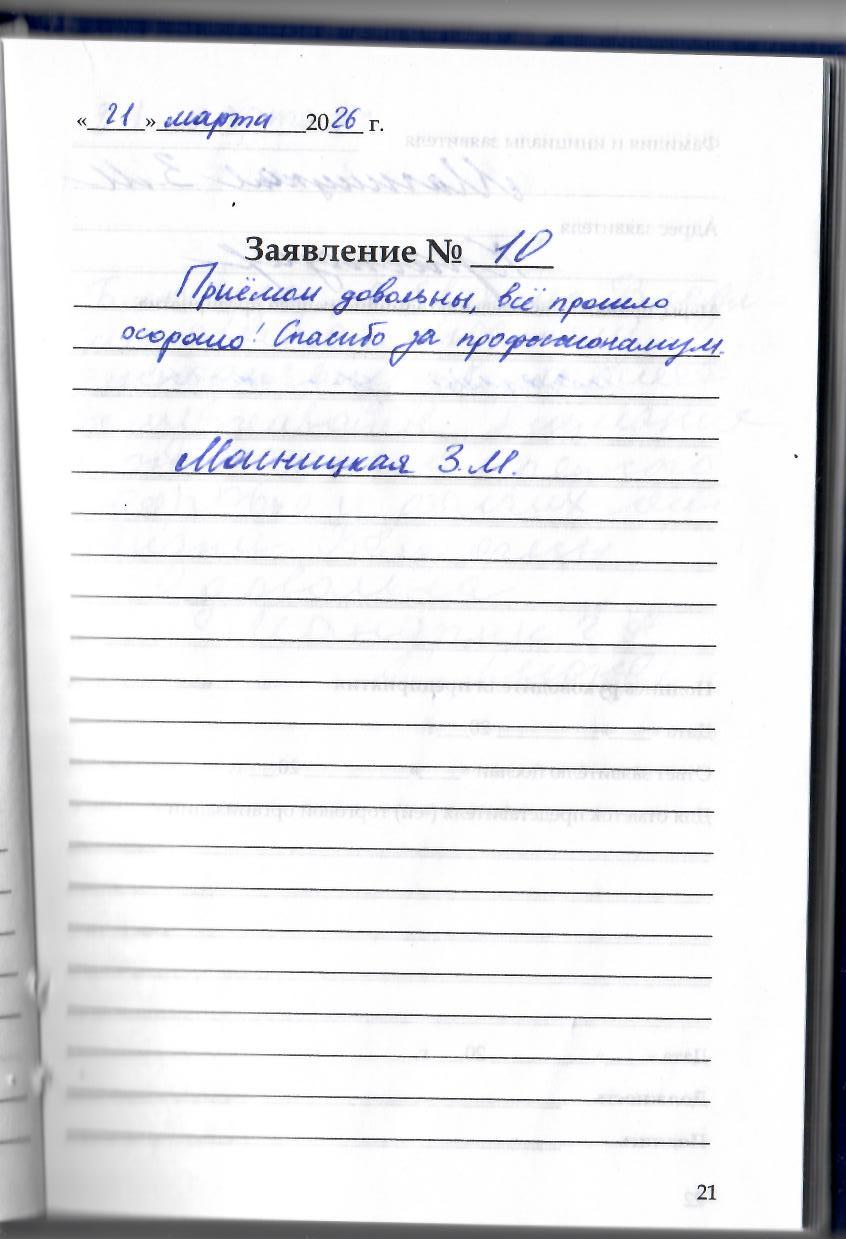 Приемом довольны, все прошло хорошо! Спасибо за профессиональзм. Магницкая З.М.