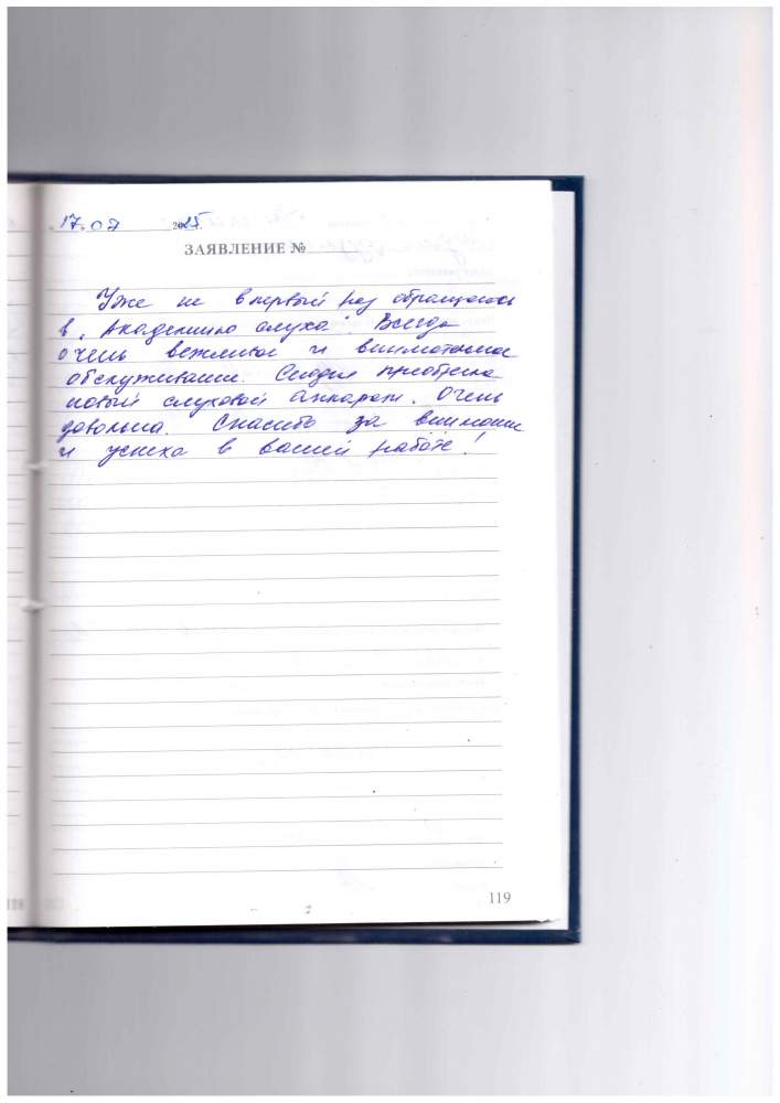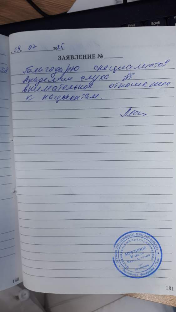 Я благодарю сотрудников "Академия слуха" за чуткую отзывчивость, за вежливость и внимание.