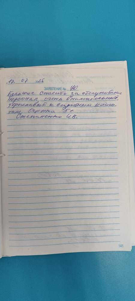 Большое спасибо за обслуживание. Персонал очень внимательный, терпеливый к возрастным клиентам. оценка 5+