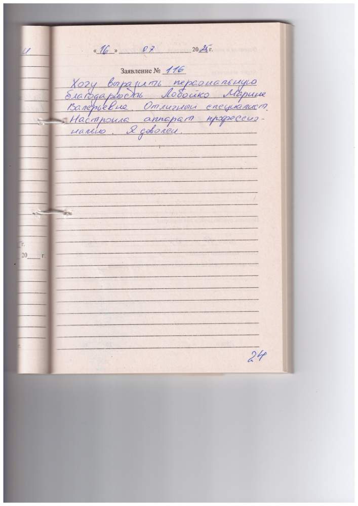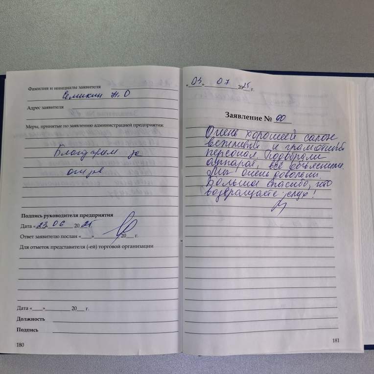 Хочу выразить персональную благодарность Лобойко Марине Валерьевне. Отличный специалист. Настроила аппарат профессионально. Я доволен.