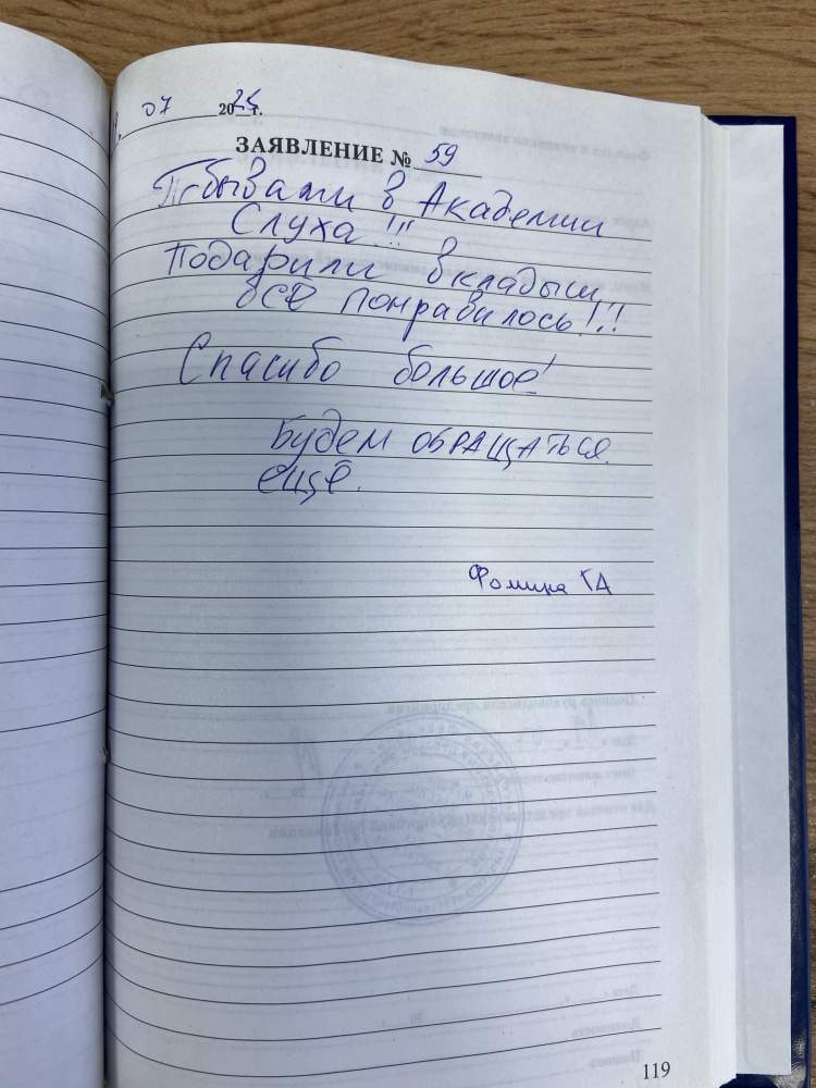 Огромная благодарность сотрудникам Академии Слуха. Особенно по Старо-Петергофскому адресу. Спасибо огромное Светлане Анатольевне.