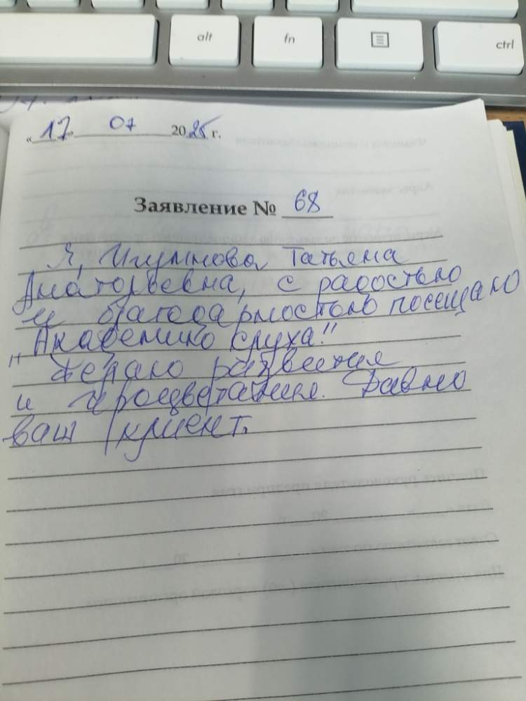 Я, Игумнова Татьяна Анатольевна, с радостью и благодарностью посещаю «Академию слуха». Желаю развития и процветания. Давно Ваш клиент.