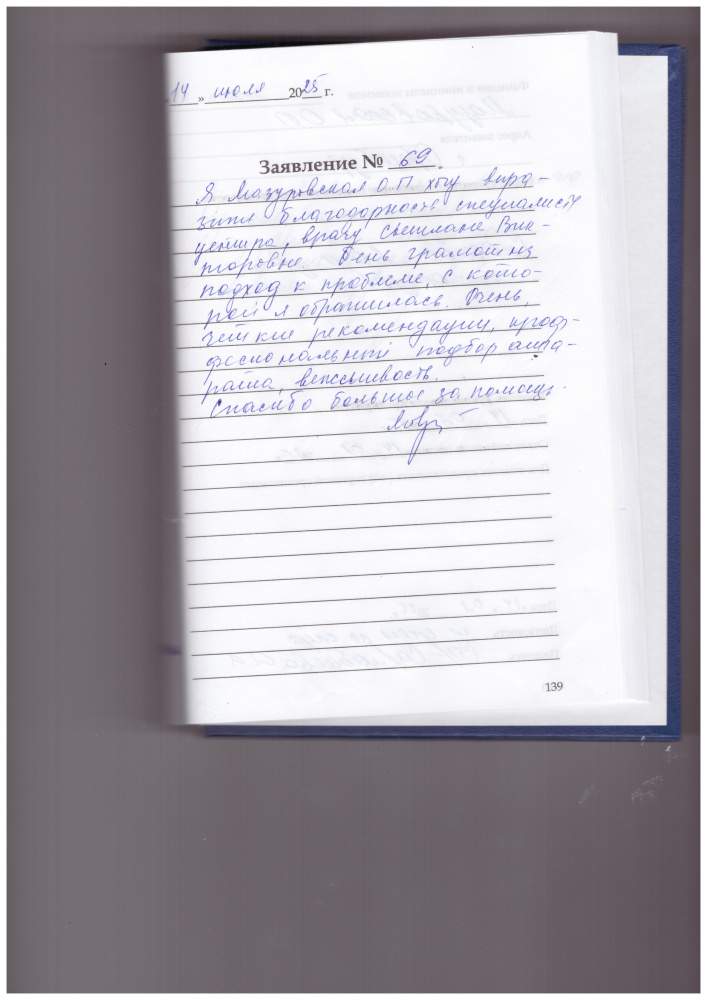 7. Я, Мазуровская О.П хочу выразить благодарность специалисту центра, врачу Светлане Викторовне. Очень грамотный подход к проблеме, с которой я обратилась. Очень четкие рекомендации, профессиональный подбор аппарата, вежливость. Спасибо большое за помощь.