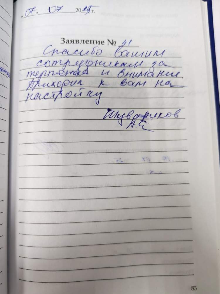 Спасибо вашим сотрудникам за терпение и внимание. Приходил к вам на настройку.