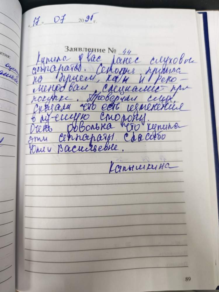 Купила у вас ранее слуховые аппараты. Сегодня пришла на прием, как и рекомендовал специалист при покупке. Проверили слух, сказали что есть изменения в лучшую сторону. Очень довольна что купила эти аппараты. Спасибо Юлии Васильевне.