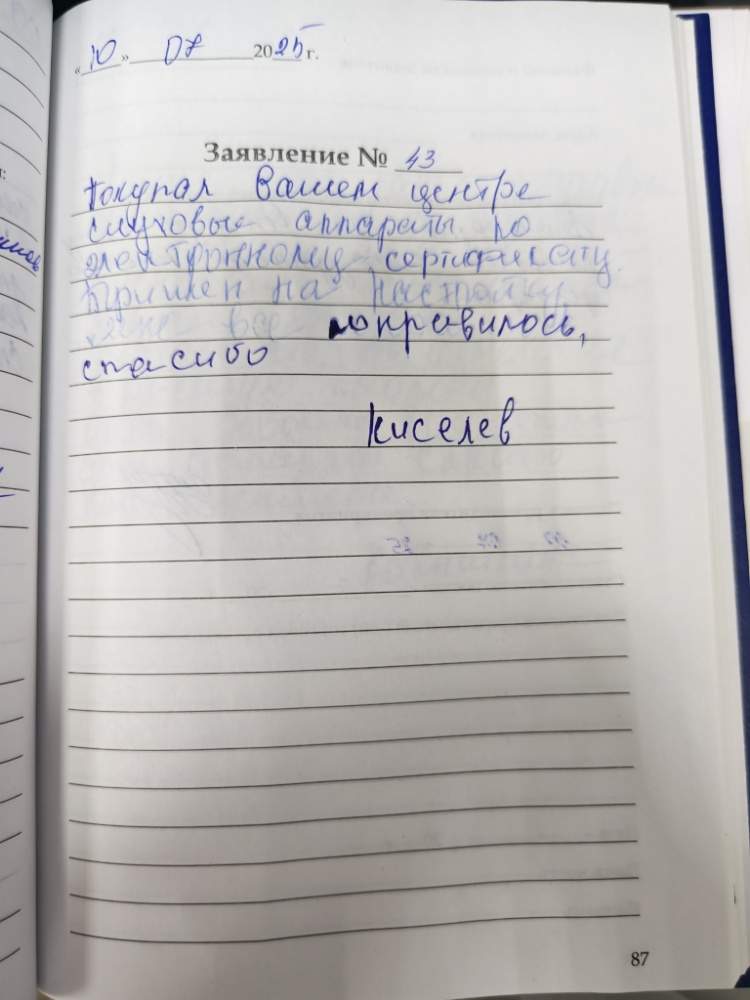 Покупал вашем центре слуховые аппараты по электронному сертификату. Пришел на настройку, мне все понравилось. Спасибо.