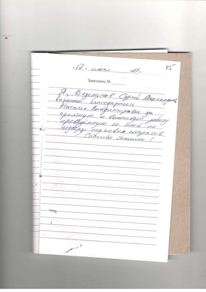 Я, Веденьков Сергей Александрович выражаю благодарность Наталье Владимировне за приятную и вежливую работу, проведённую со мной по подбору слуховых аппаратов. Спасибо большое!