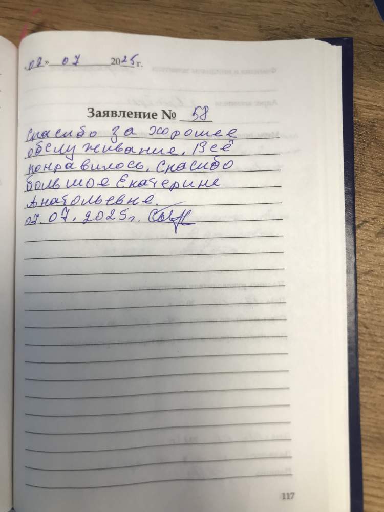 Спасибо за хорошее обслуживание. Все понравилось. Спасибо большое Екатерине Анатольевне.