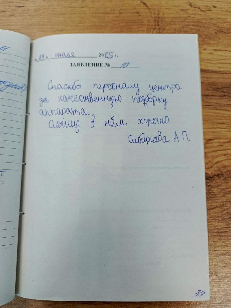 Спасибо, выданный аппарат хорошо подошел. Всё грамотно объяснили.