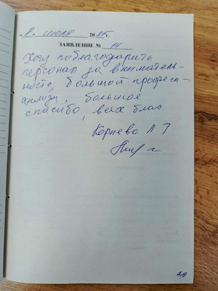 Хочу поблагодарить персонал за внимательность, большой профессионализм. Большое спасибо, всех благ.