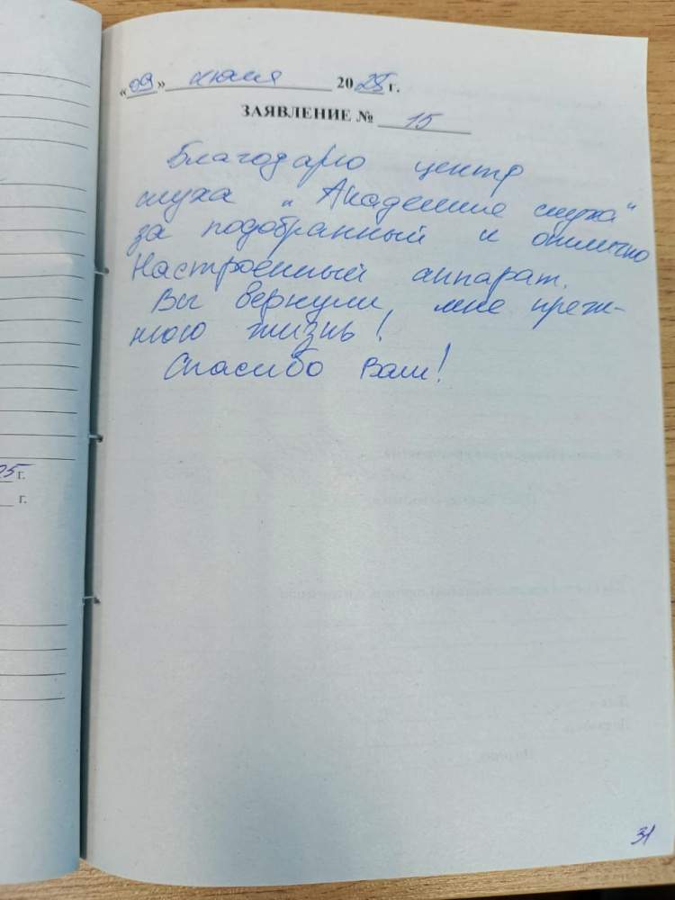 Спасибо за прекрасное обслуживание! Очень хорошо слышать стал в вашем аппарате!