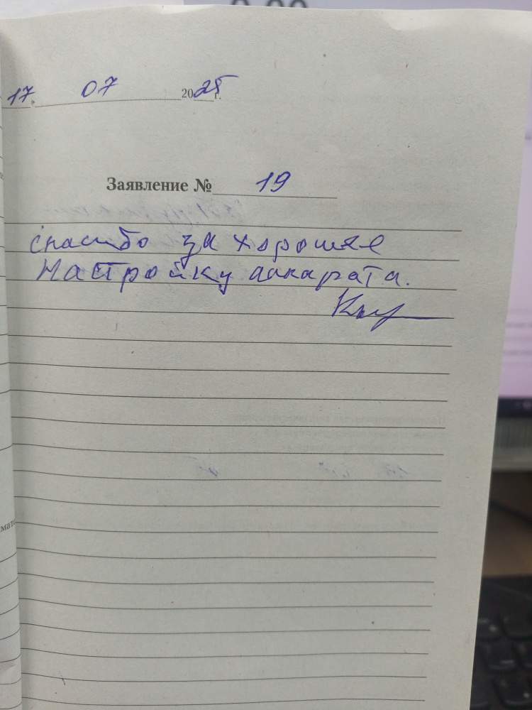 17.07.2025 Кыркин Валерий Иванович Спасибо за хорошую настройку аппарата.