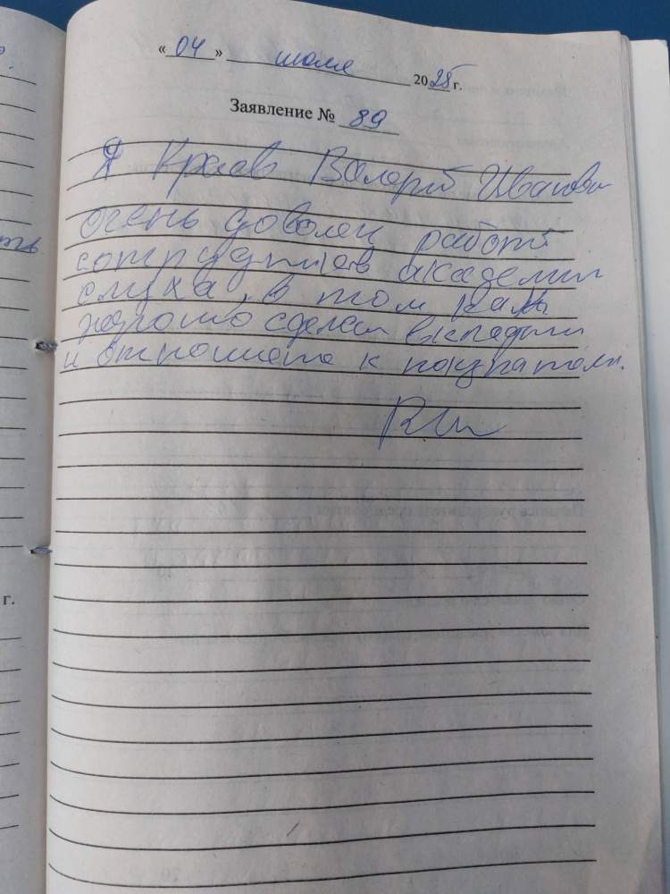 Очень доволен работой сотрудников Академии слуха, в том как хорошо сделали вкладыш и отношением к покупателям.
