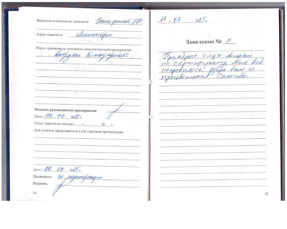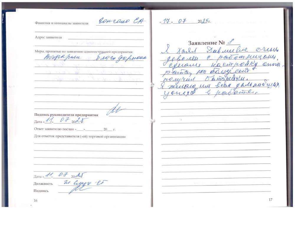 Я Хаял Давлиевич очень доволен работницами. Сделали настройку аппарата, на бонусы получил батарейки.