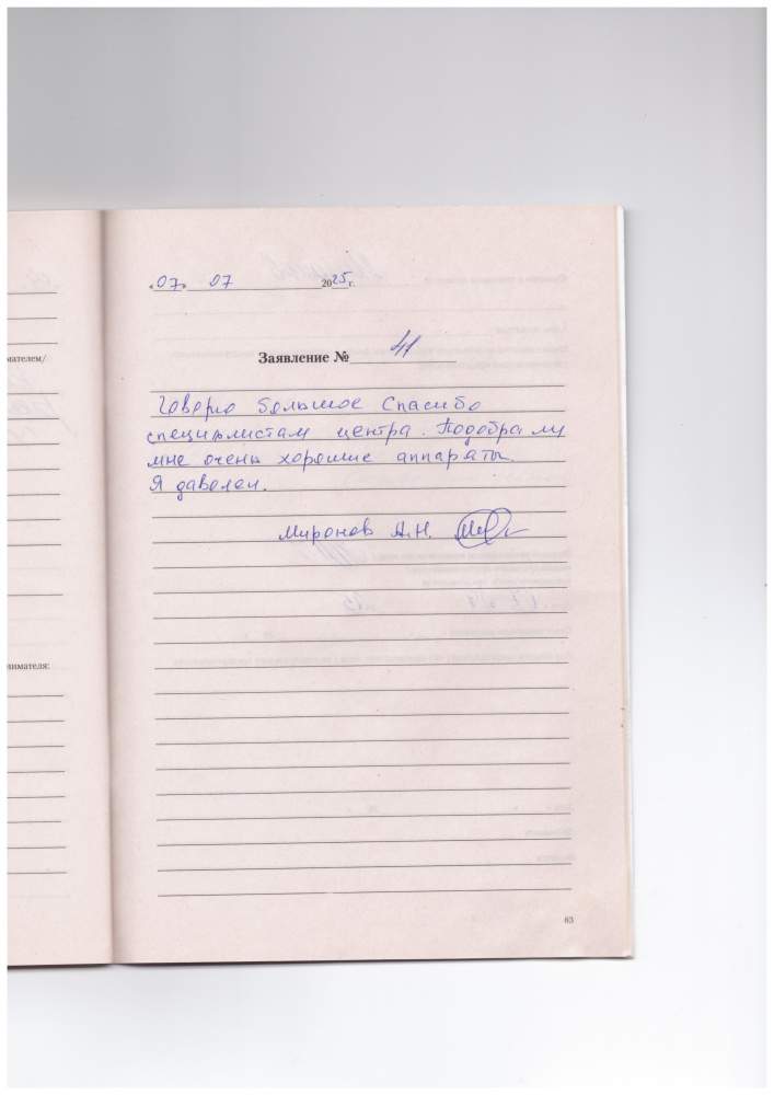 Говорю большое спасибо специалистам центра. Подобрали мне очень хорошие аппараты. Я доволен.