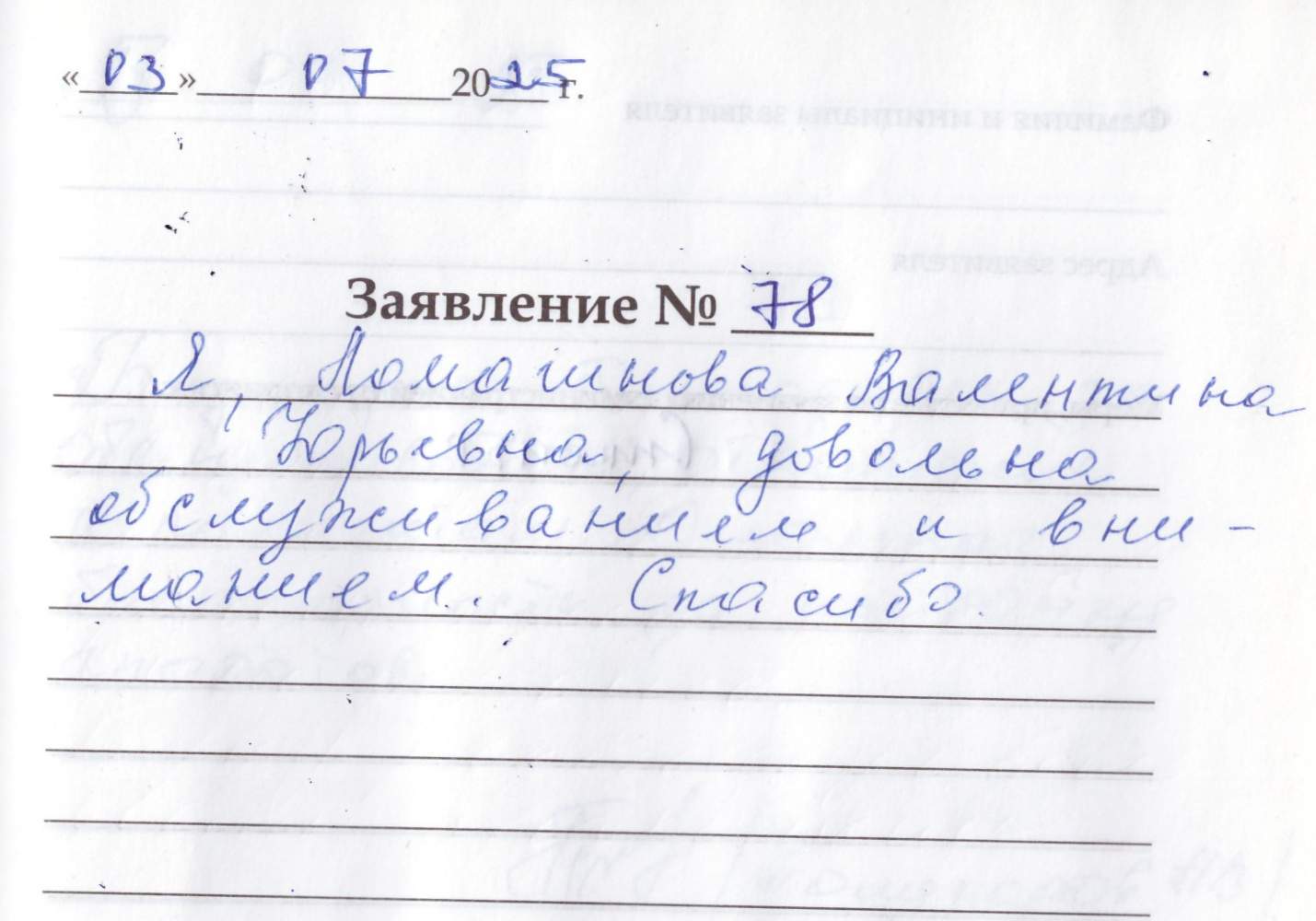 Я, Ломагинова Валентина Юрьевна, довольна обслуживанием и вниманием. Спасибо.