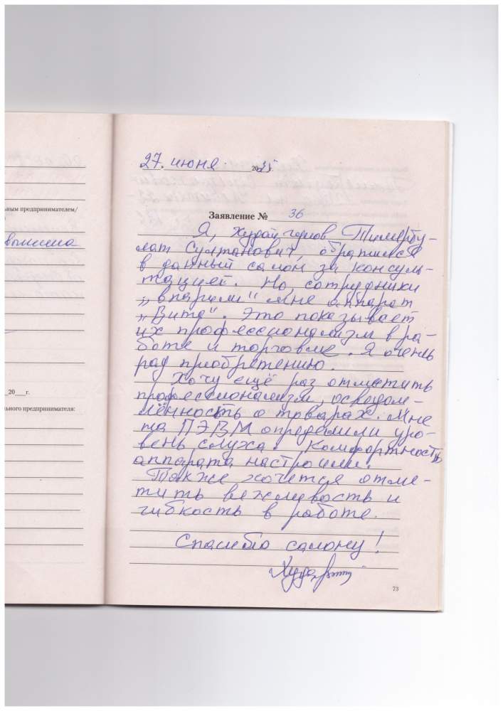 Я, Худайгулов Тимербулат С. Обратился в данный за консультацией. И сотрудники подобрали мне аппарат ВИТА" Это показывает их профессионализм в работе и торговле. Я очень рад приобретению. Хочу еще раз отметить профессионализм, осведомленность о товарах. Мне определили уровень слуха. Комфортность аппарата настроили. Так же хочется отметить вежливость и гибкость в работе. Спасибо салону.