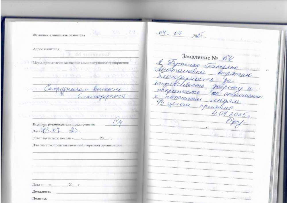 Я, Дольнова Валентина Евгеньевна хочу выразить благодарность сотрудникам и лично Светлане Леонидовне, за прием , внимание, доброту. Желаю удачи, за работу.