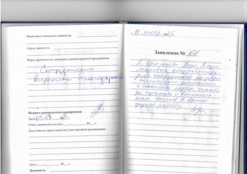 Я, Цыплакова Вера Владимировна, хочу поблагодарить сотрудников за доброжелательное отношение к пожилым людям, спасибо за чуткость и внимательность. Успехов в вашей трудной работе.