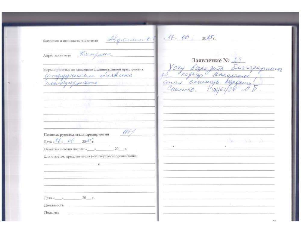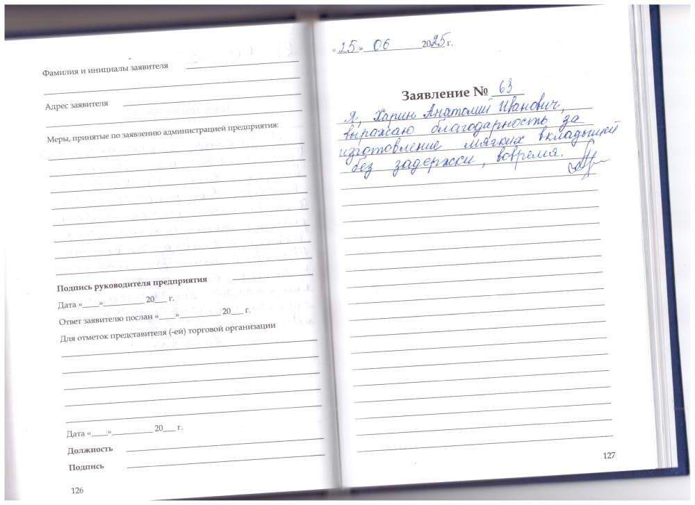Я Харин Анатолий Иванович выражаю Благодарность, за изготовление мягких вкладышей без задержки , вовремя .