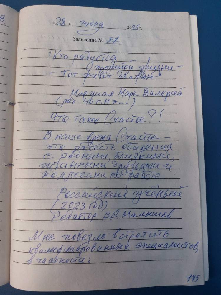 "Кто радуется прошлой жизни-тот живет дважды" (Марциал Марк Валерий род. 40г. н.э). Что такое счастье?!В наше время Счастье это радость общения с родными и близкими, истинными друзьями и коллегами по работе (Российский ученый 2023 год, Редактор В.С. Малышев). Мне повезло встретить квалифицированных специалистов.